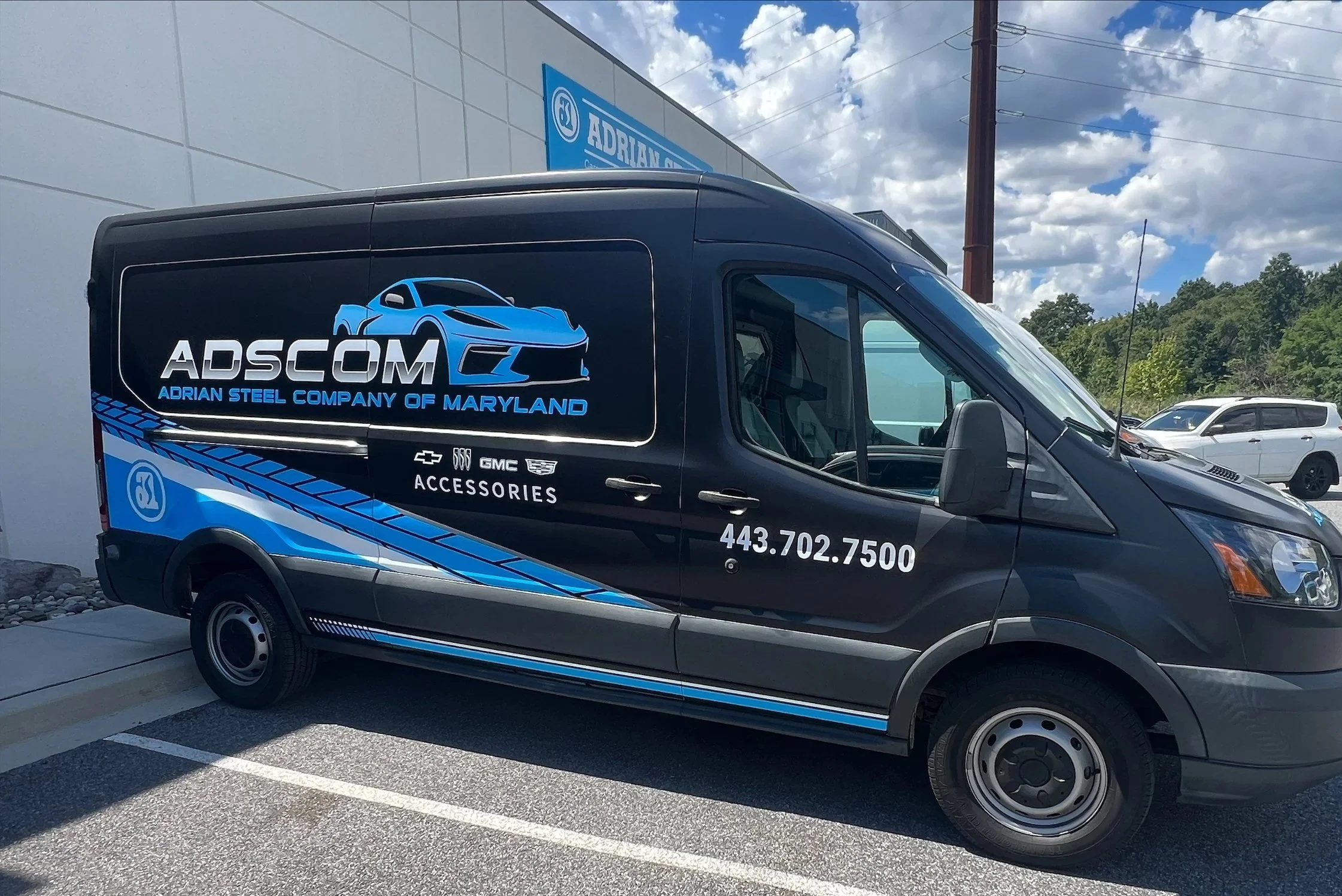 Vehicle wrap designed for a ADSCOM, developed through multiple client revisions to align with their initial vision and feedback. The project explores material contrast using matte and glossy vinyl to enhance visual impact, while adhering to professional pre-press standards for production accuracy.
