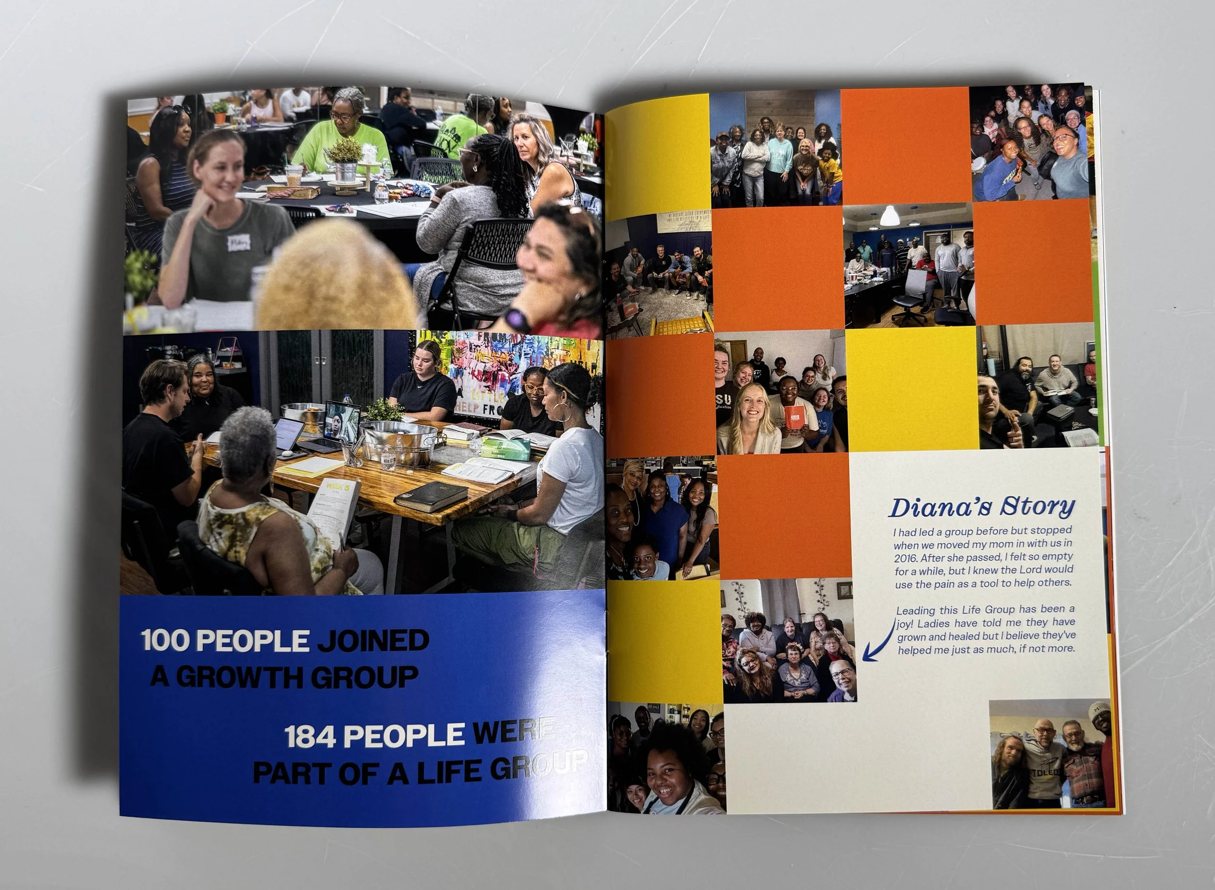 Gratitude Report for Declare Church, designed as a 20-page booklet using their new brand guidelines to introduce and promote the church’s name change. The piece was distributed to hundreds of recipients and shared online. The project also included photography, with a majority of images taken by me in collaboration with other photographers.